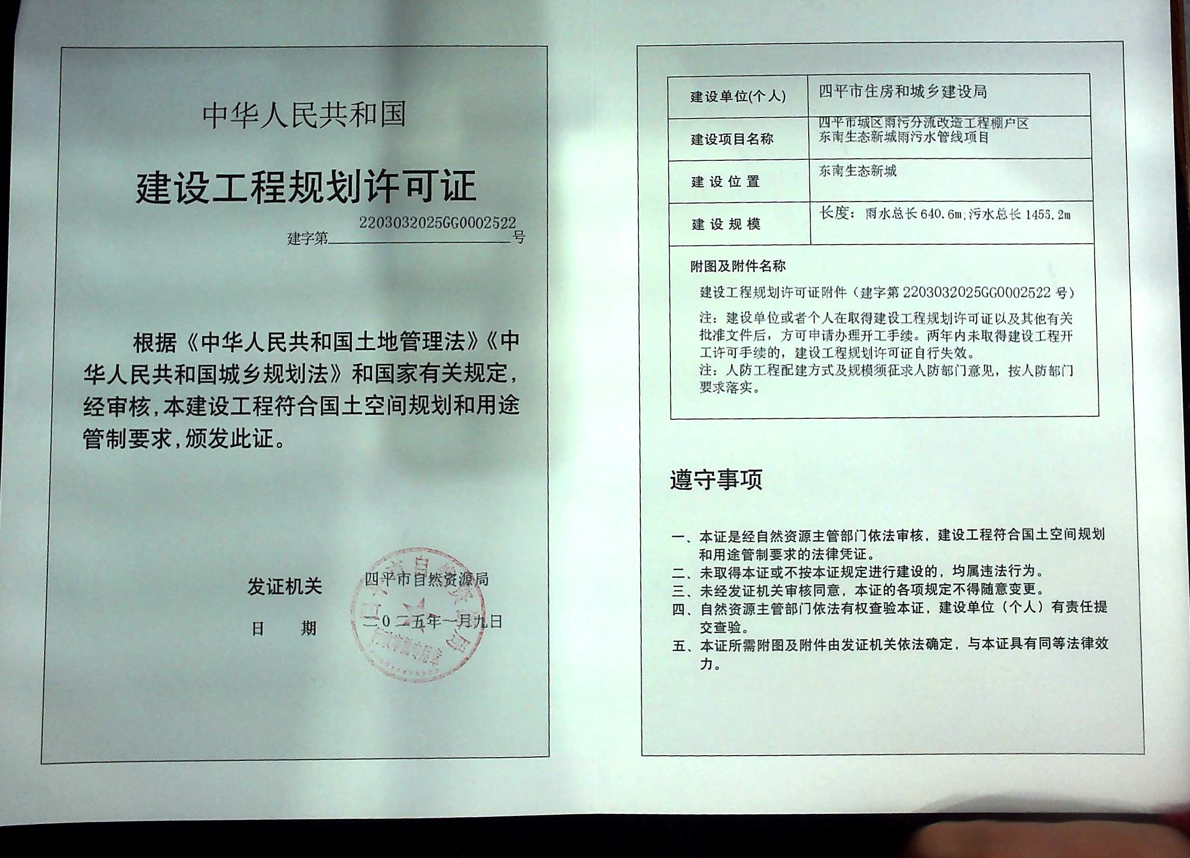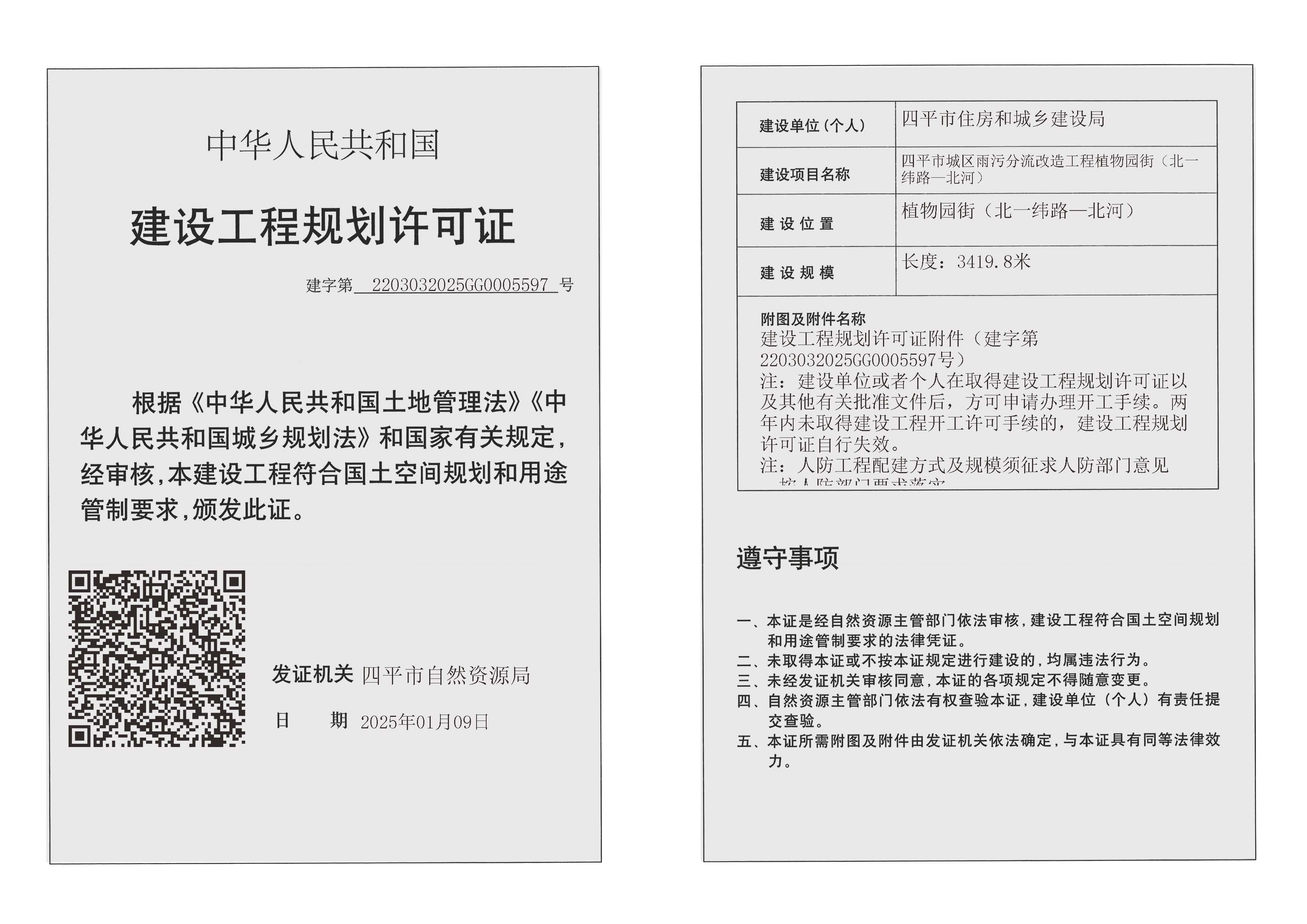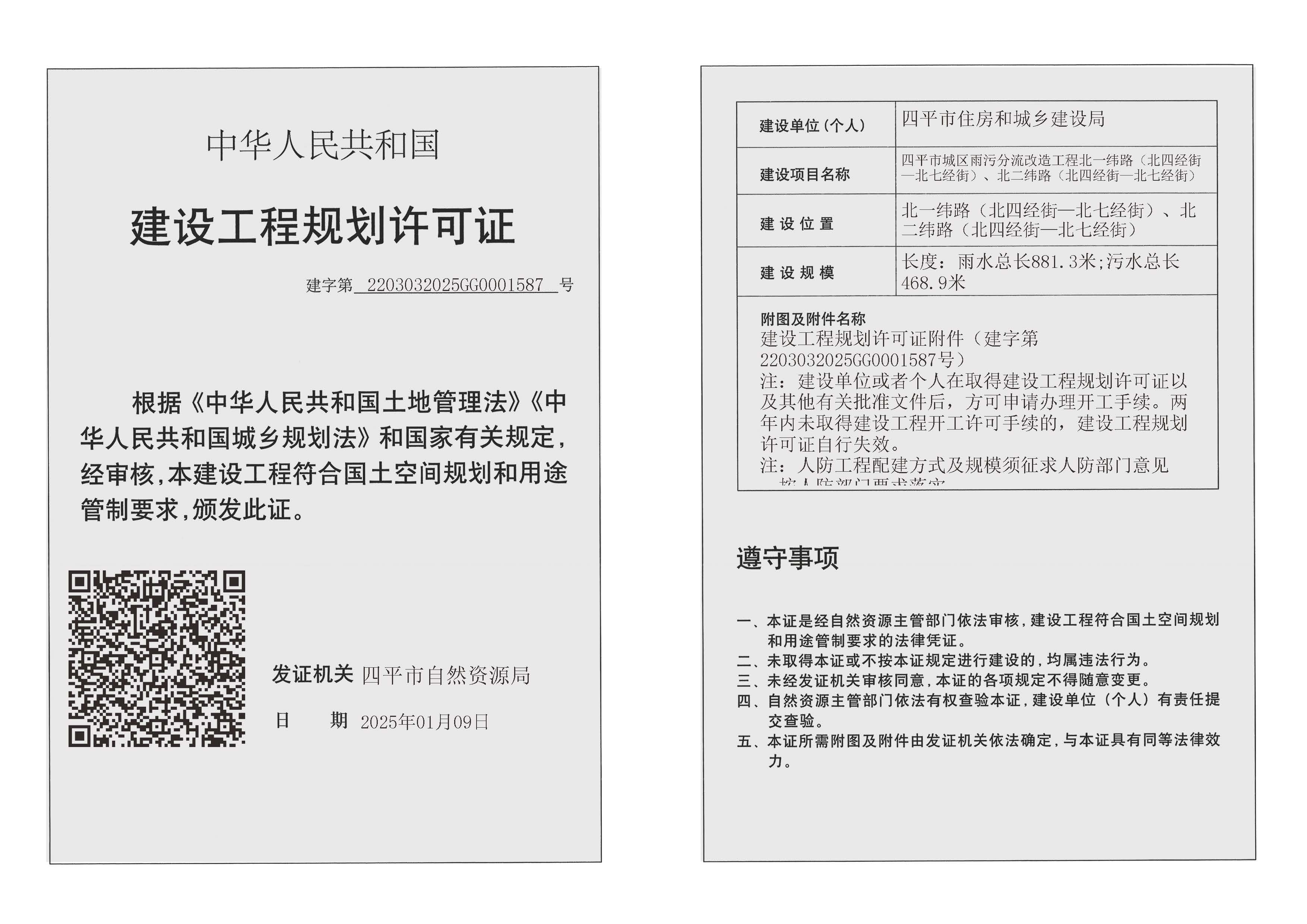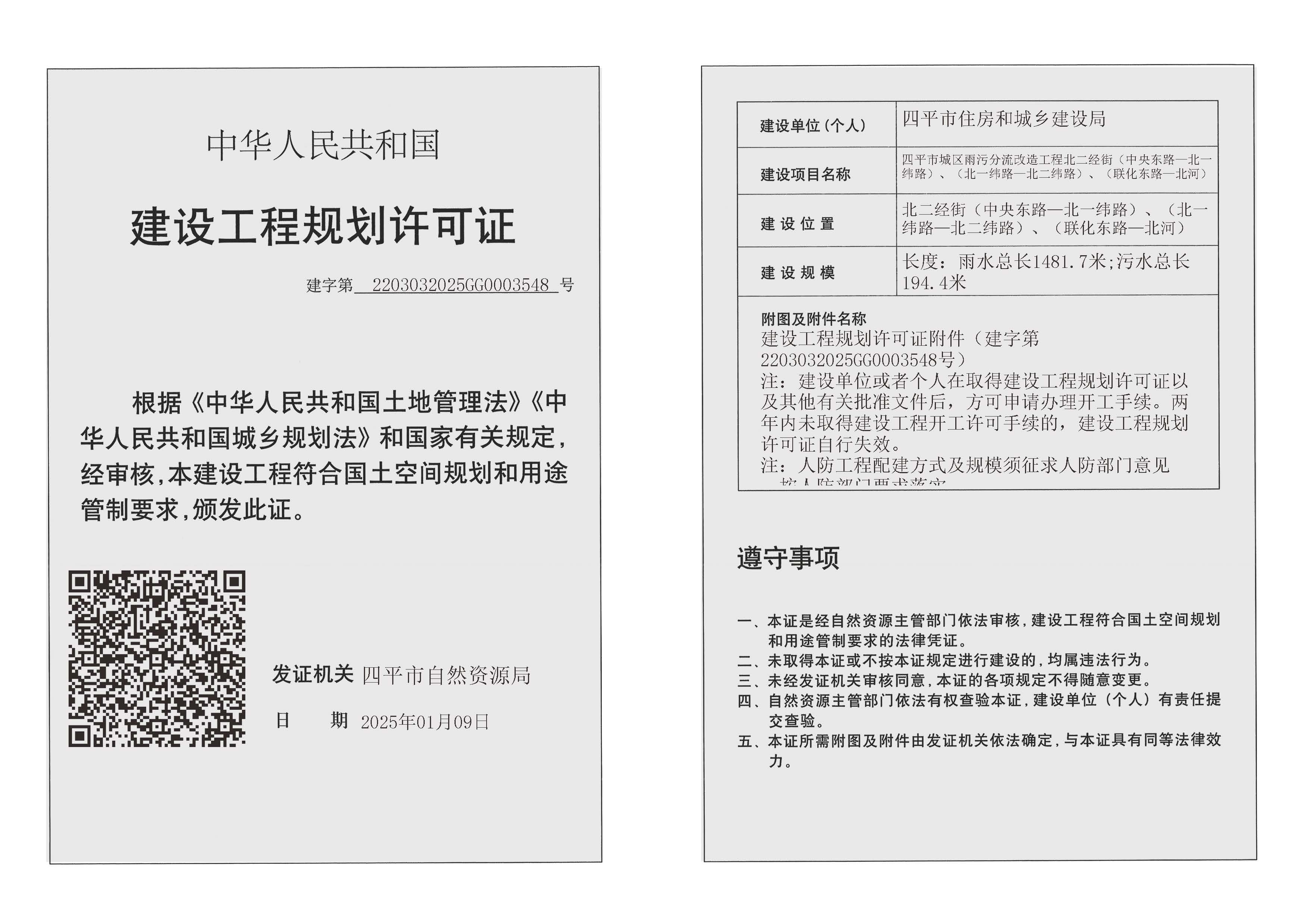 四平市城区雨污分流改造工程北一纬路等八条道路雨污水管线项目