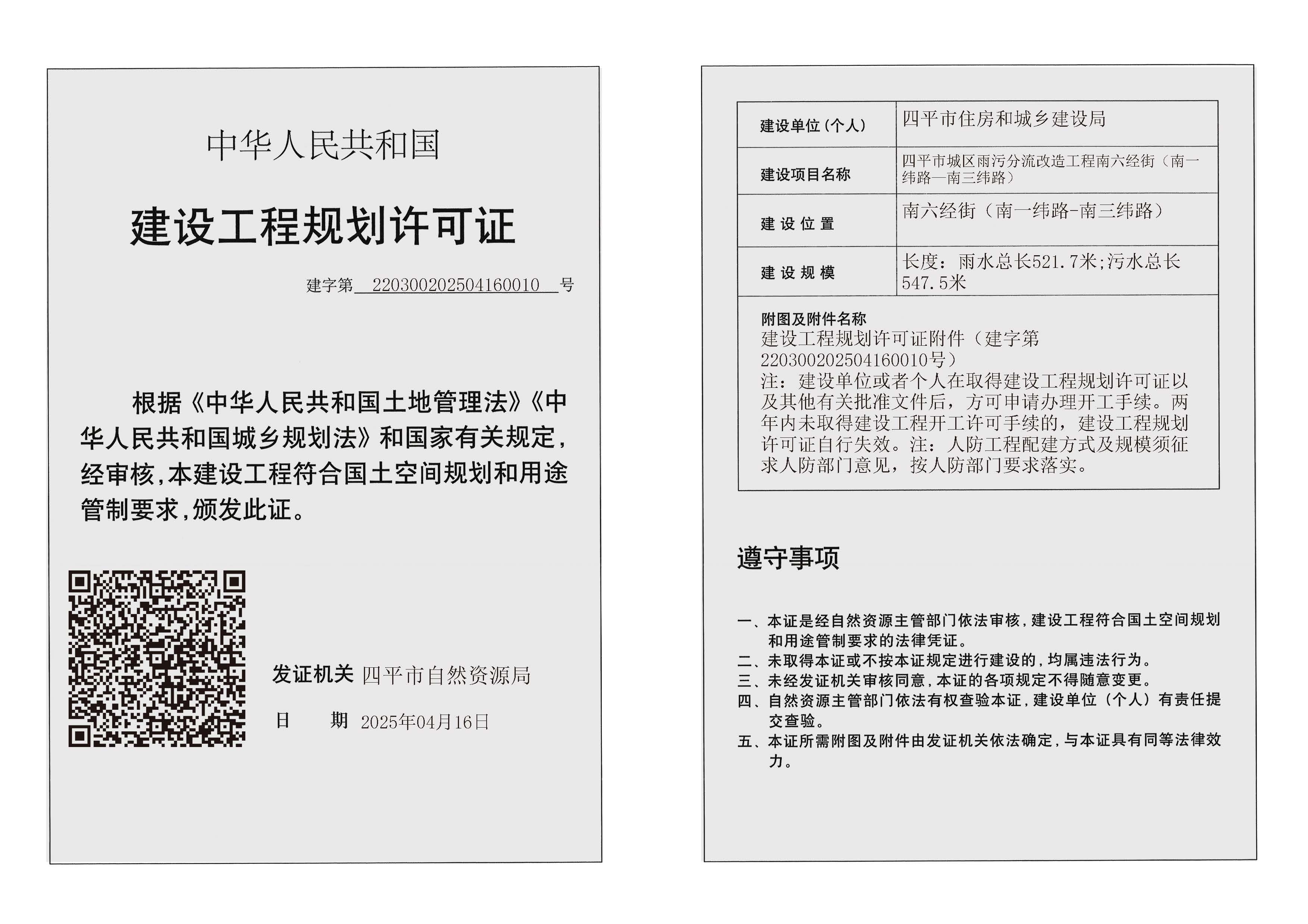项目名称:四平市城区雨污分流改造工程南一纬路等八条道路雨污水管线项目