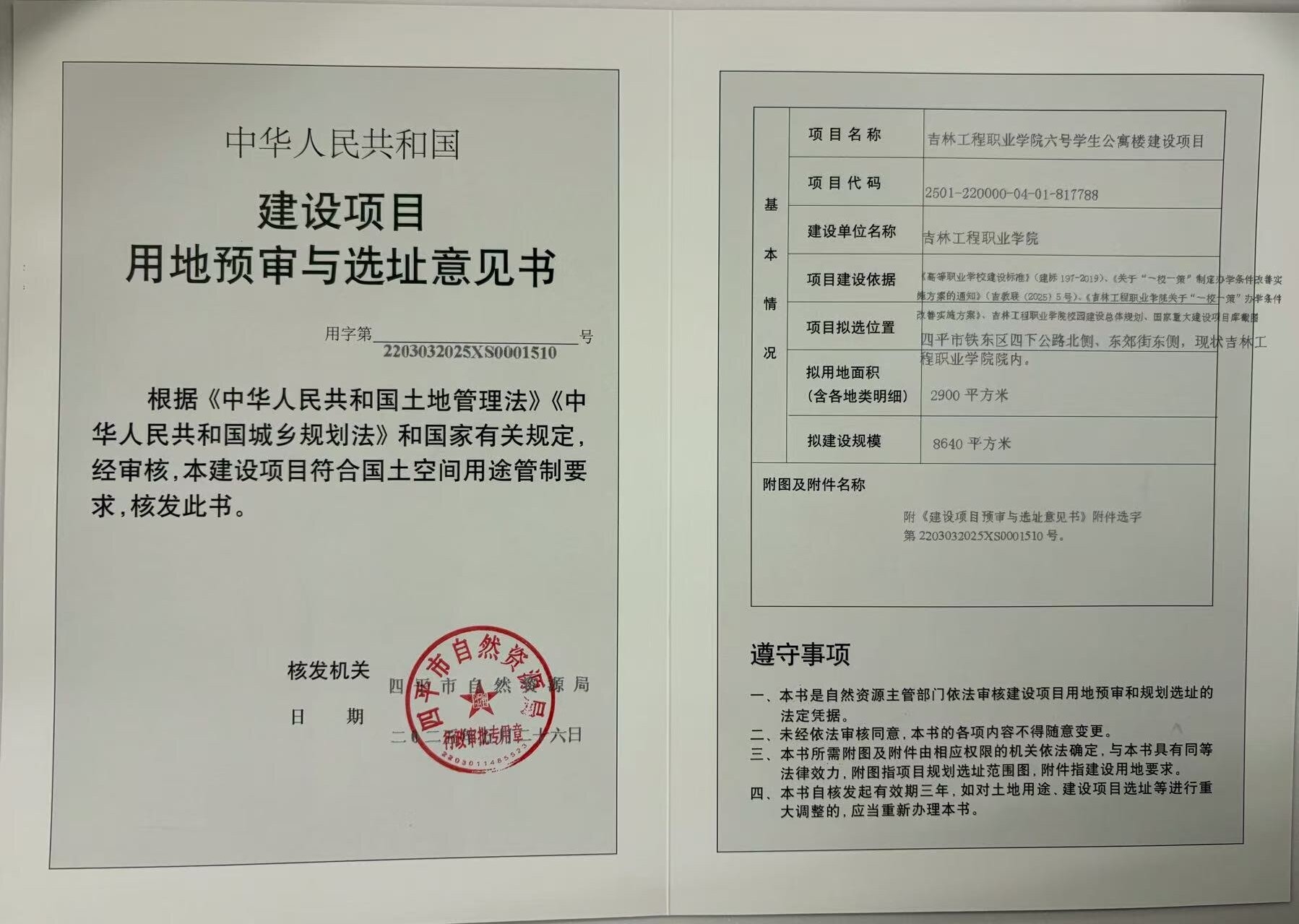 项目名称:吉林工程职业学院六号学生公寓楼建设项目