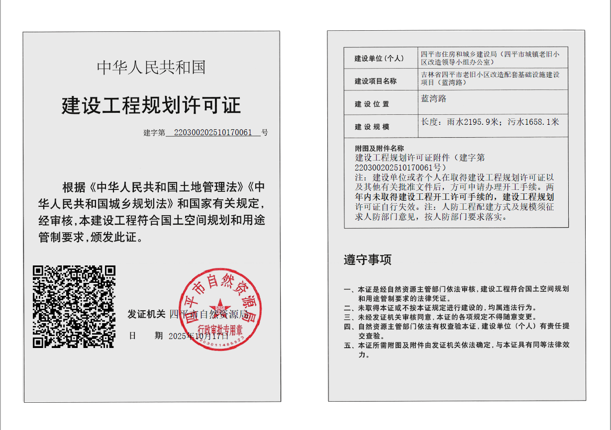 项目名称:吉林省四平市老旧小区改造配套基础设施建设项目(蓝湾路)