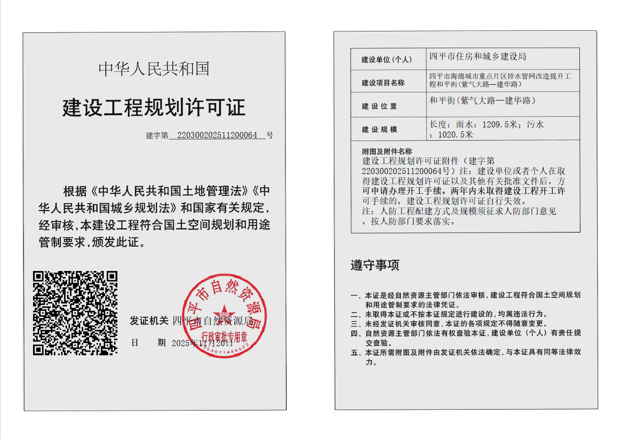 项目名称:四平市海绵城市重点片区排水管网改造提升工程团结街、和平街