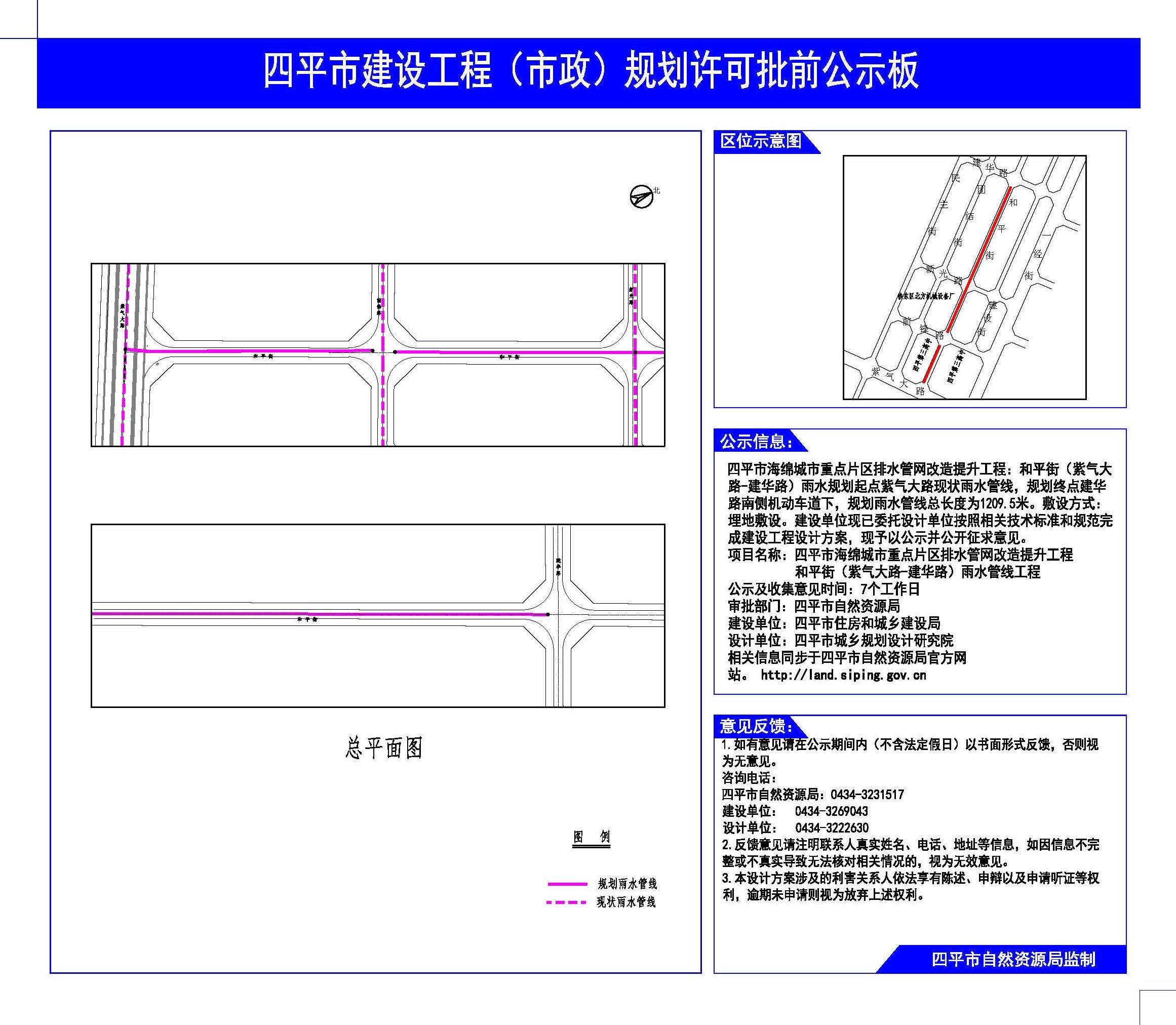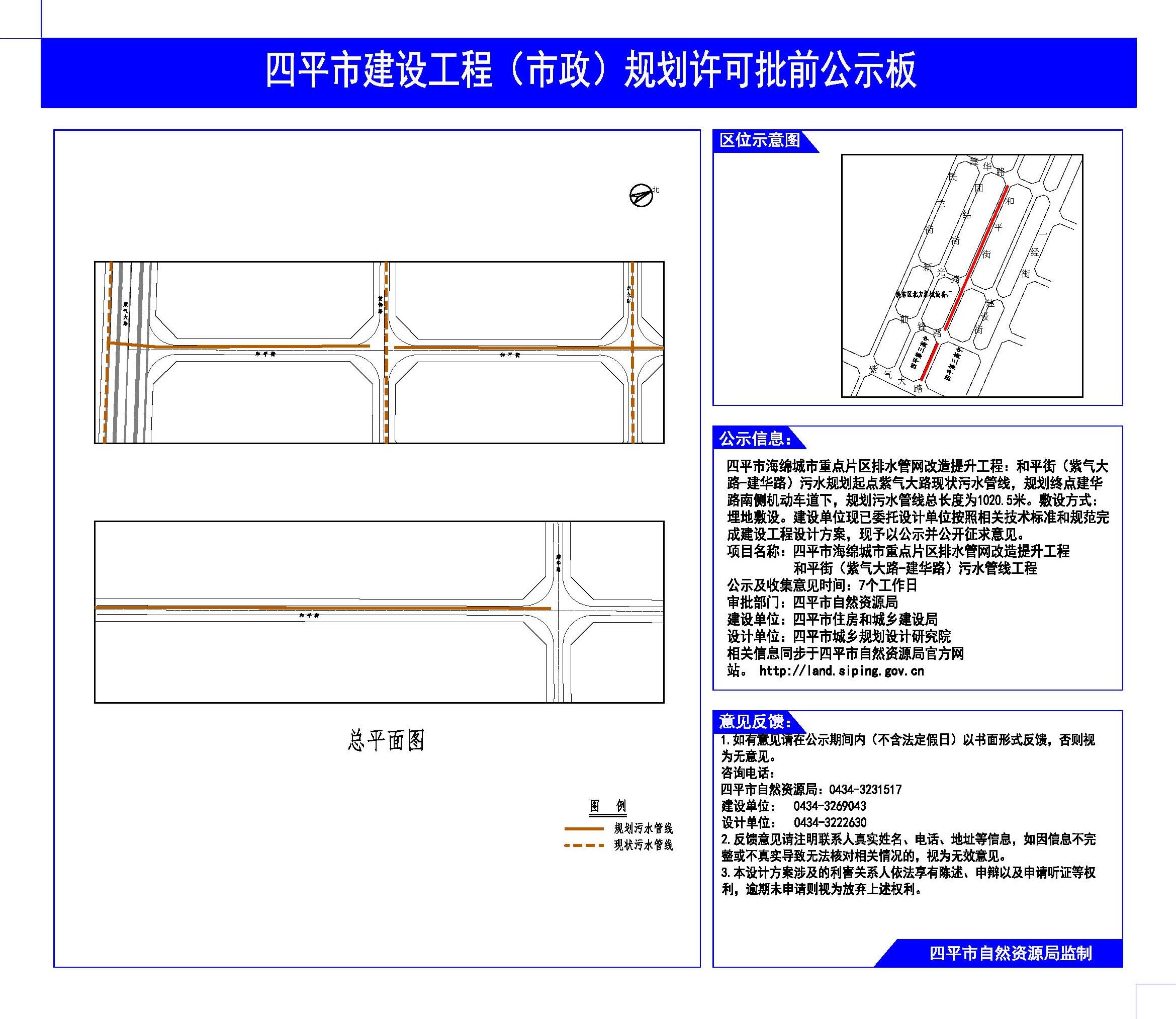 | 项目名称 | 关于四平市海绵城市重点片区排水管网改造提升工程(团结街、和平街)项目建设工程规划许可批前公示 |