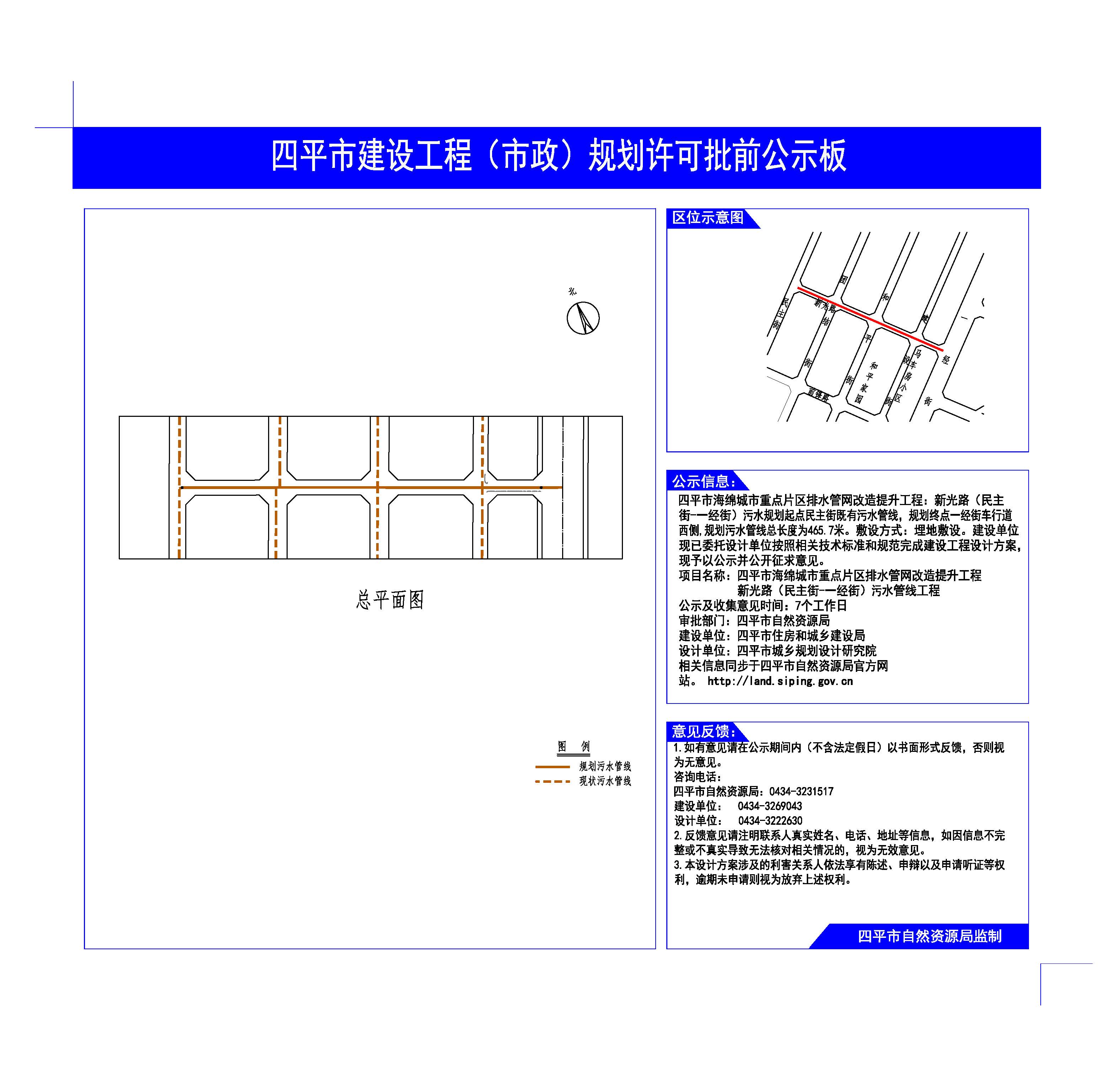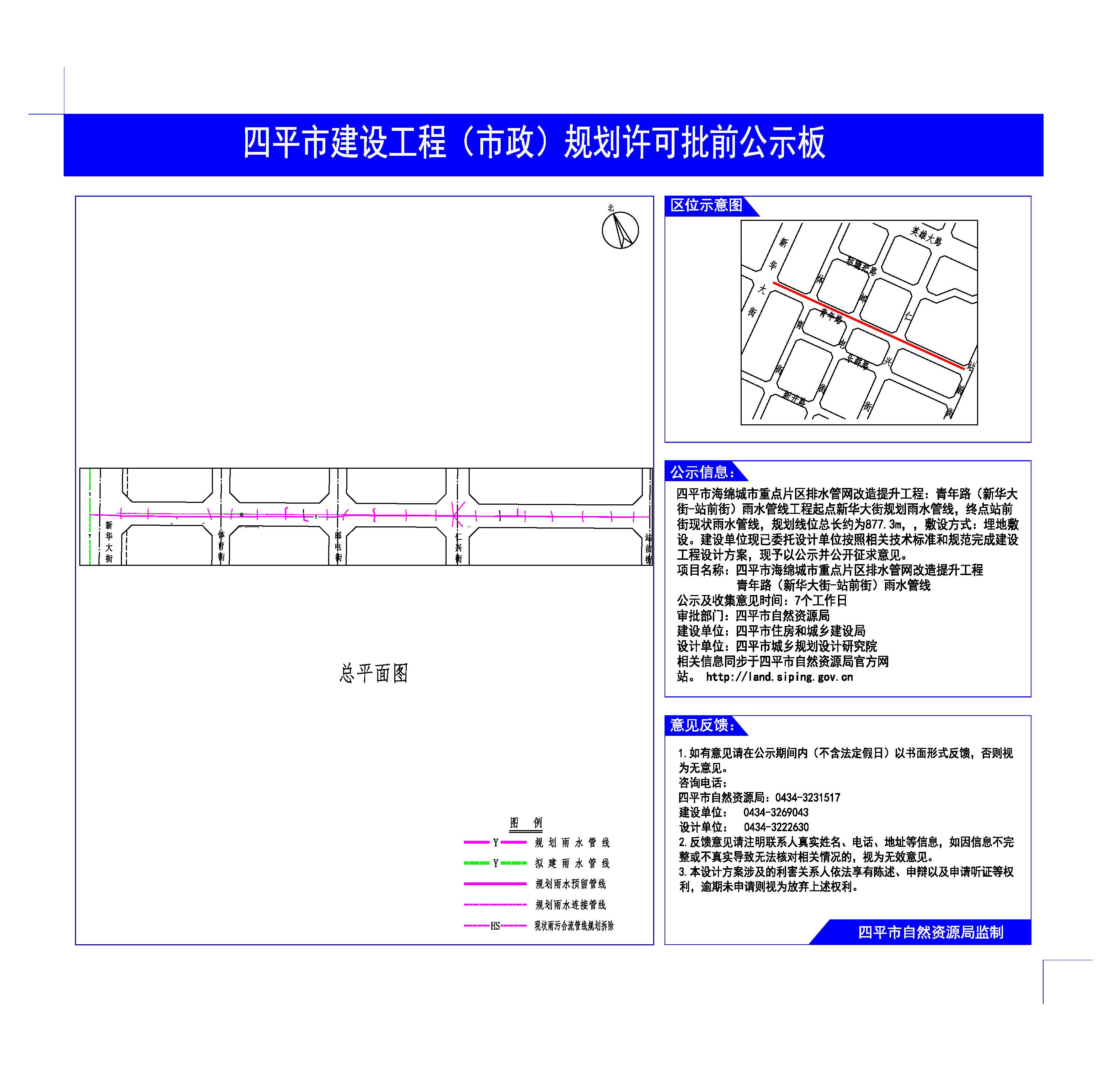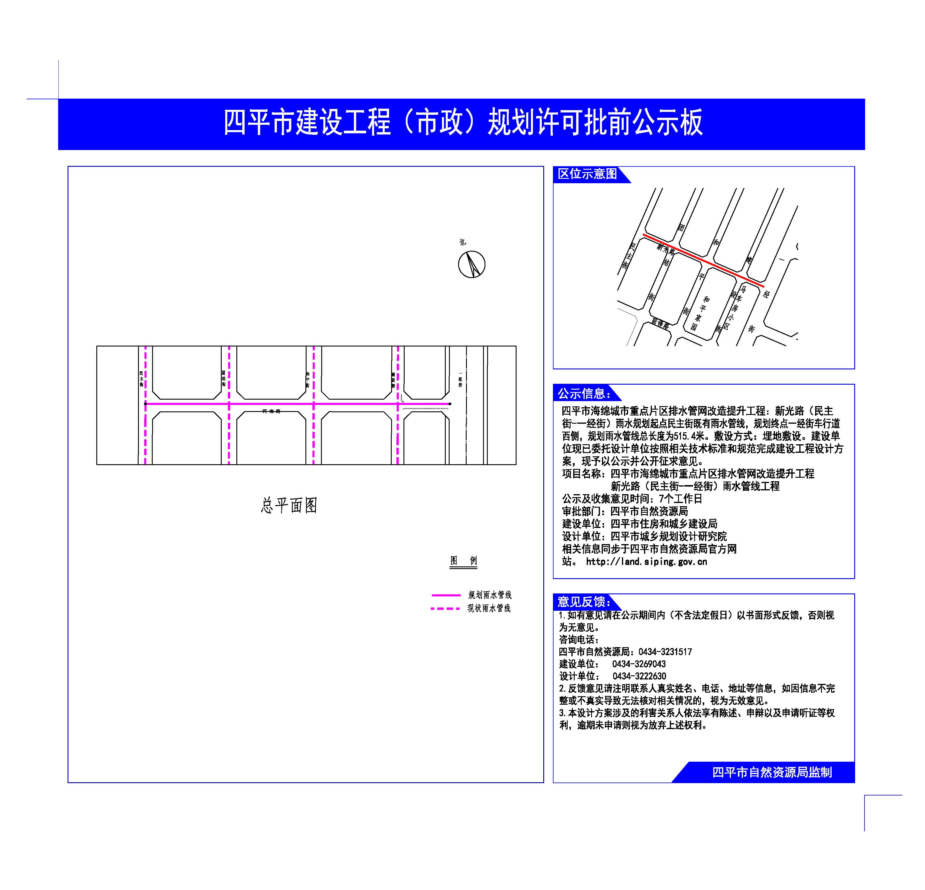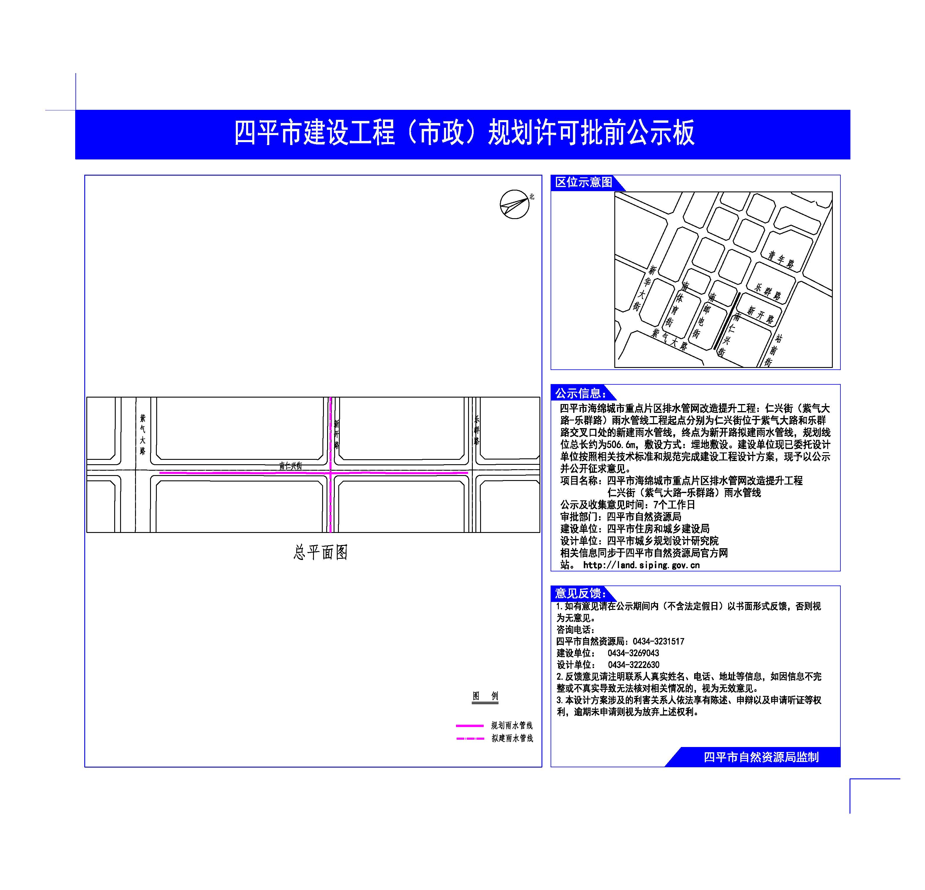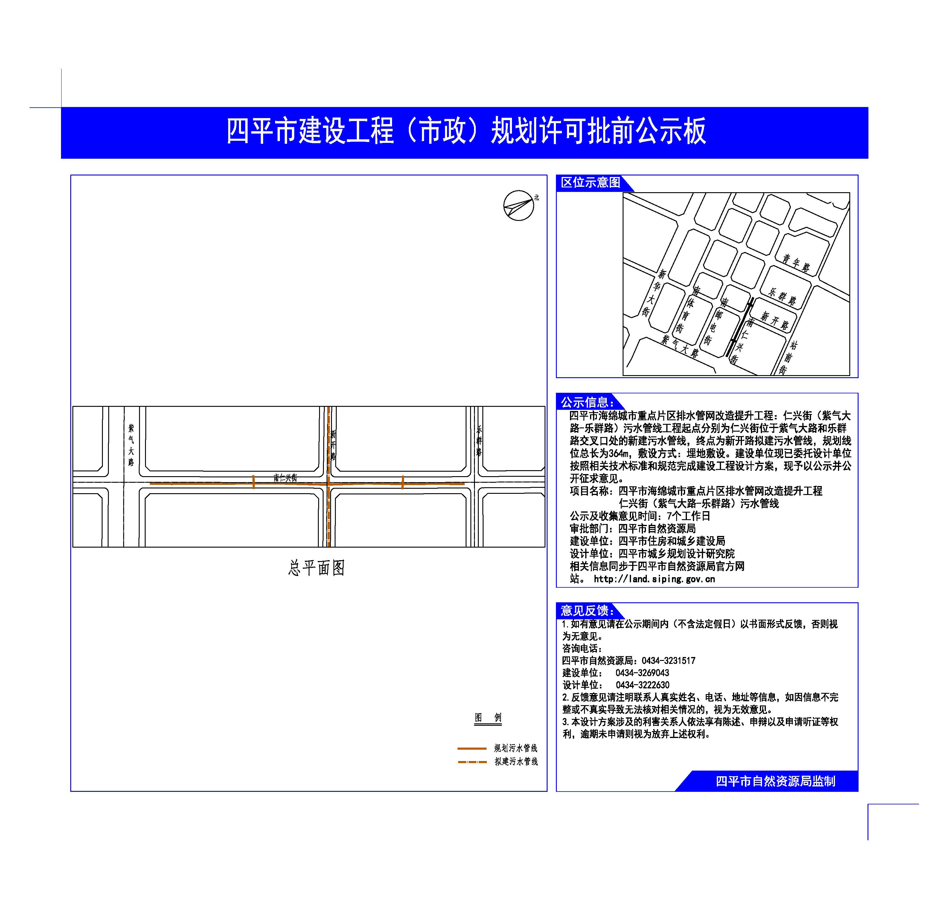 | 项目名称 | 关于四平市海绵城市重点片区排水管网改造提升工程仁兴街(紫气大路—乐群路)、新光路(民主街—一经街)、青年路(新华大街—站前街)建设工程规划许可批前公示 |