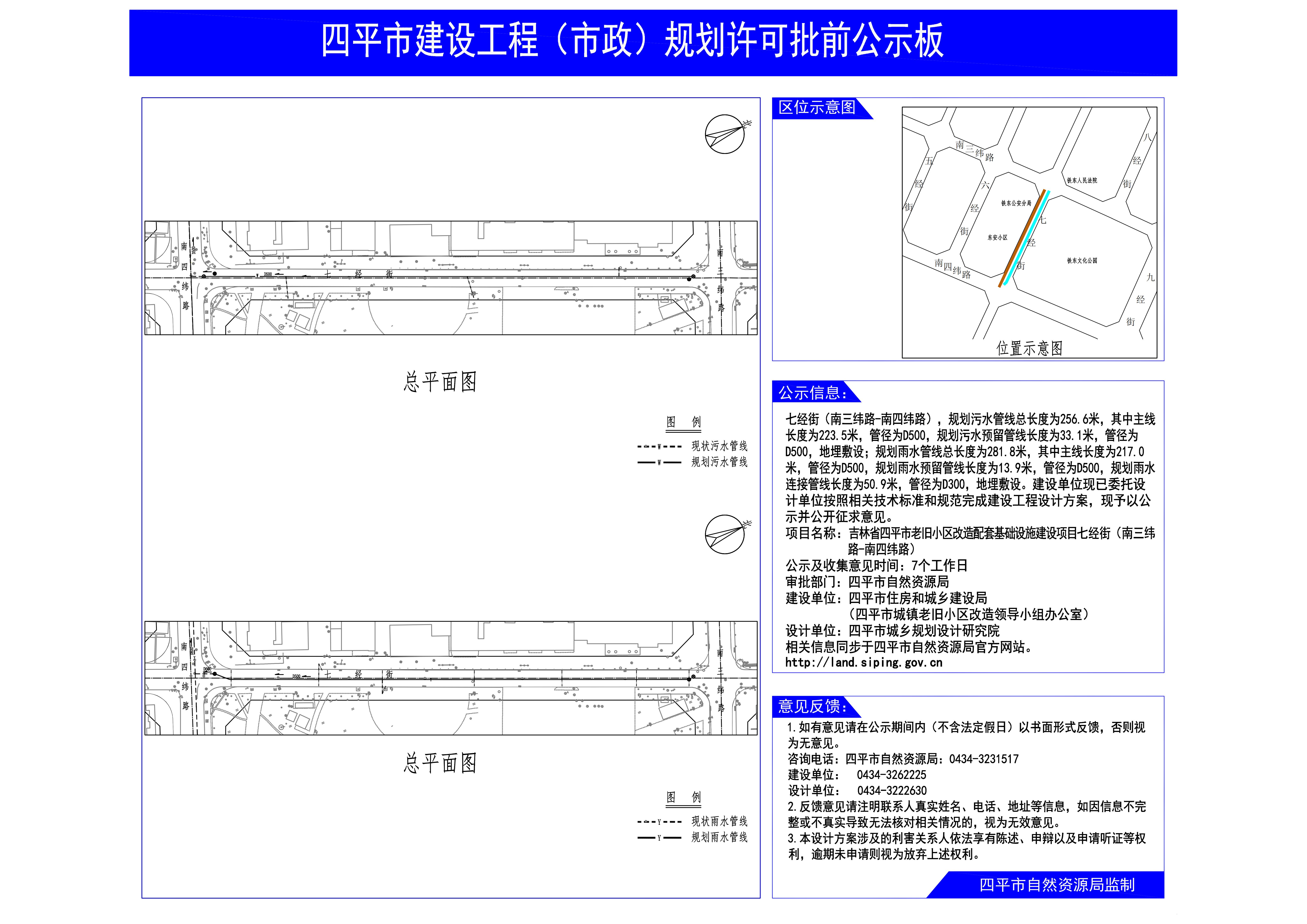 附:1、吉林省四平市老旧小区改造配套基础设施建设项目南七经街(南三纬路-南四纬路)雨、污水管线工程总平面图