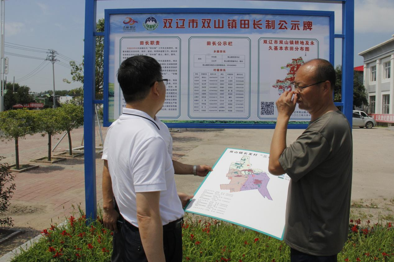 王国旗一行实地察看了镇、村田长制公示牌设立现场,听取了双山镇田长制工作推进情况汇报,详细了解耕地保护及执法监察日常巡查工作情况。