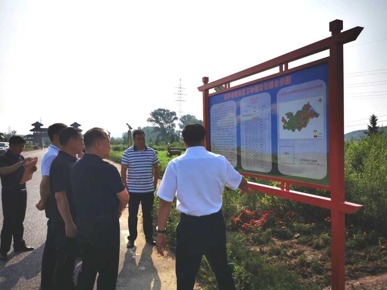 上午,王善斌首先来到石岭镇,详细查看了镇级“田长制”公示牌设立、耕地恢复和保护有关情况。他强调,要压实区、镇、村三级田长责任,常态化开展耕地保护问题排查整治,形成责任明晰、监管有序、处置高效的耕地保护长效监管体系。随后,王善斌一行来到塔子沟村,查看了村级“田长制”公示牌,并听取了石岭镇党委书记、田长刘云飞关于“田长制””工作落实情况的汇报。