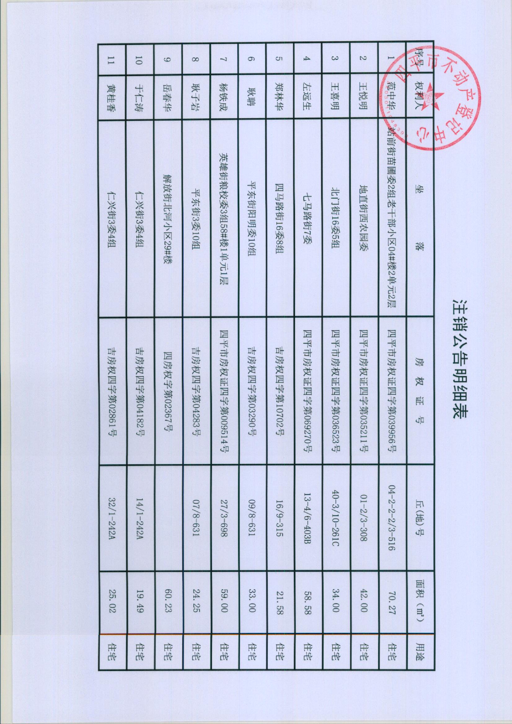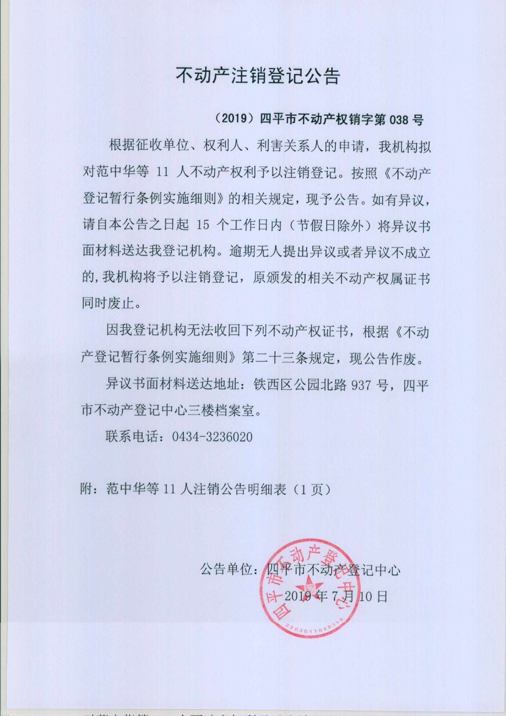 四平市不动产注销登记公告(2019-038号)